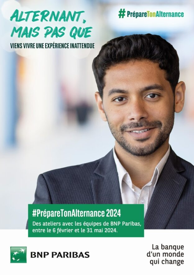 Participez entre le 6 février et le 31 mai 2024, à huit journées thématiques au cours desquelles vous découvrirez les différents métiers proposés au sein de BNP Paribas. Pendant ces journées, vous aurez également accès à nos nombreuses offres en alternance et pourrez directement postuler. Lundi 11 et jeudi 21 mars : les métiers du commerce Jeudi 14 et lundi 25 mars : Les métiers de la financeMardi 19 mars et jeudi 4 avril : Les métiers transverses et fonctions supports (RH, juridique, marketing, communication, risques, audit etc.)Mardi 2 et mardi 23 avril : Les métiers de la tech et ITPar ailleurs, nous proposons à vos étudiants d’échanger avec des collaborateurs, bénéficier de conseils pour la réalisation de leur CV et préparer les entretiens de recrutement.7, 14 février, 12 et 20 mars : Ateliers coaching CV/entretien + process de recrutement 7, 14, 23 et 30 mai : Échange avec des alternants déjà en poste. Réservez votre agenda et inscrivez-vous à ces temps forts en visioconférence
