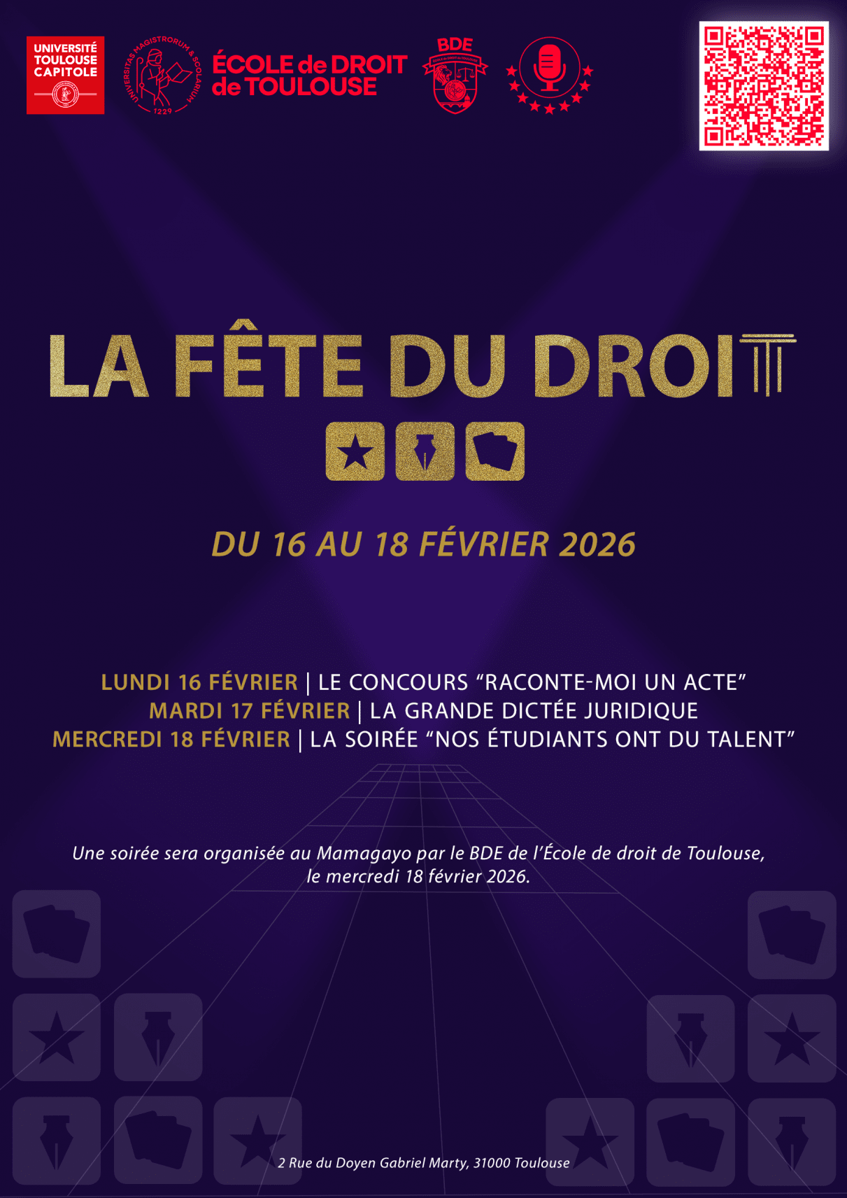 L'École de droit de Toulouse organise la Fête du Droit du 16 au 18 février 2026.
